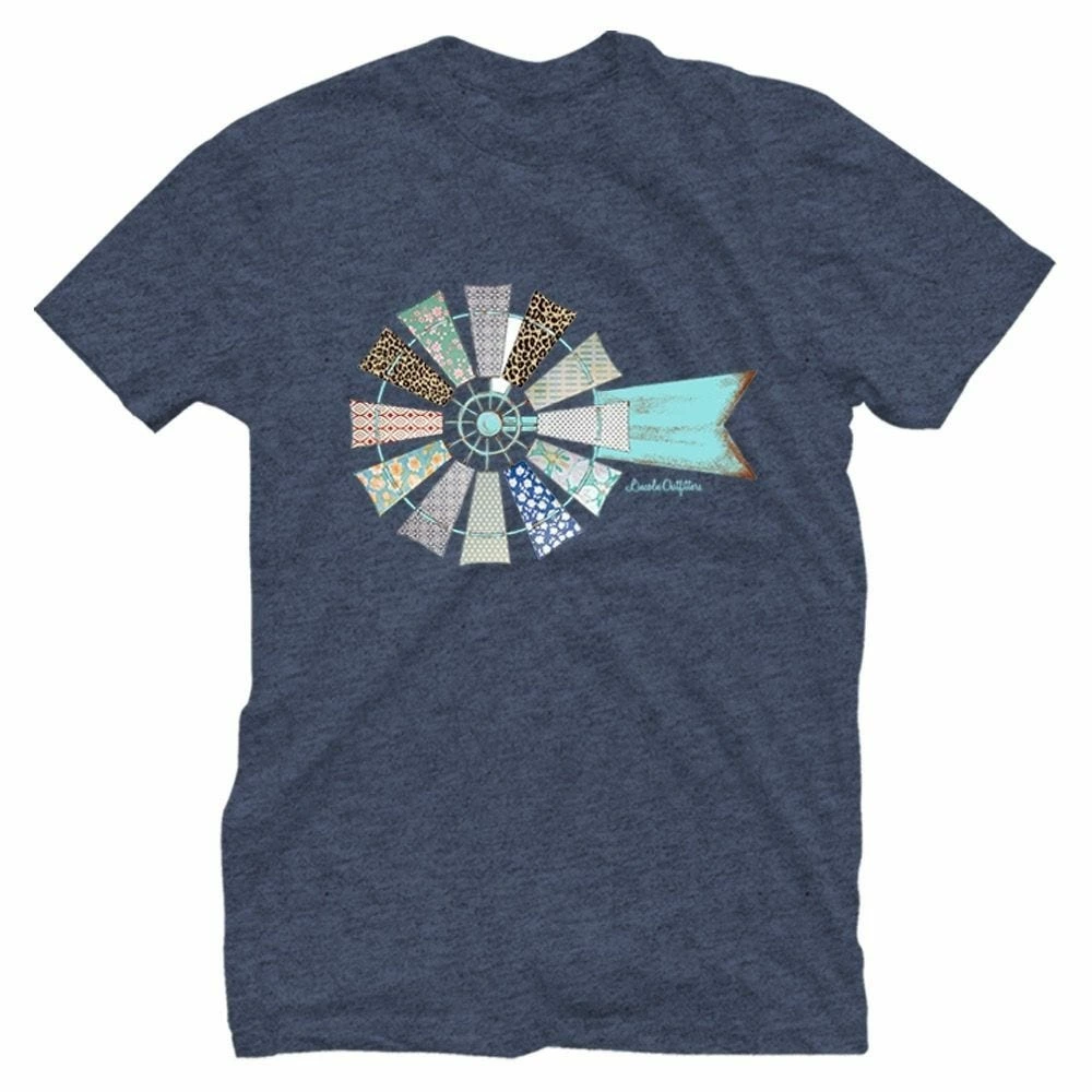- Front Chest Screen Print of Pattern Filled Windmill Design